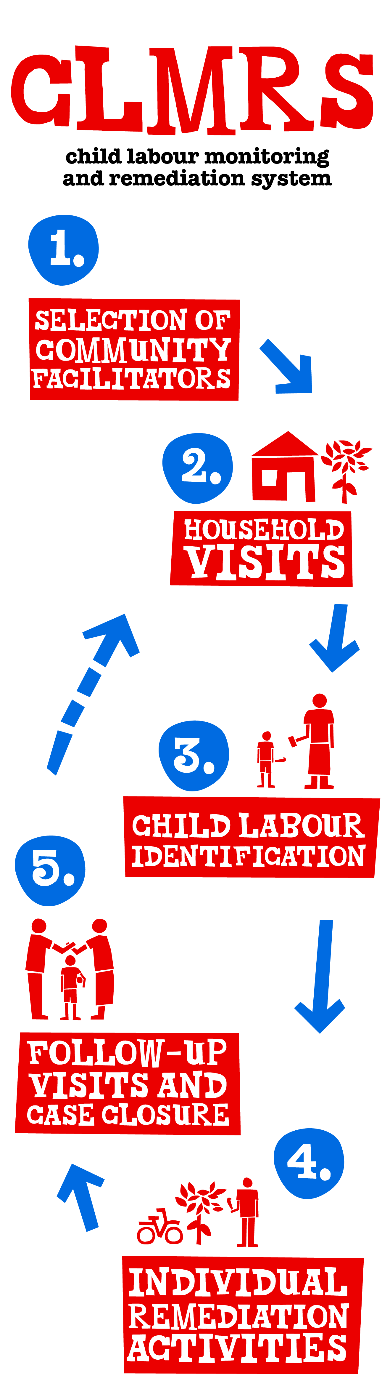 CLMRS helps the co-ops we work with to identify instances of child labour, find alternative solutions and prevent the use of child labour by raising awareness. The cooperatives, with support from ICI and Tony’s, roll out the system to all their members, moving beyond the farmers we work with to try and reach the entire community.